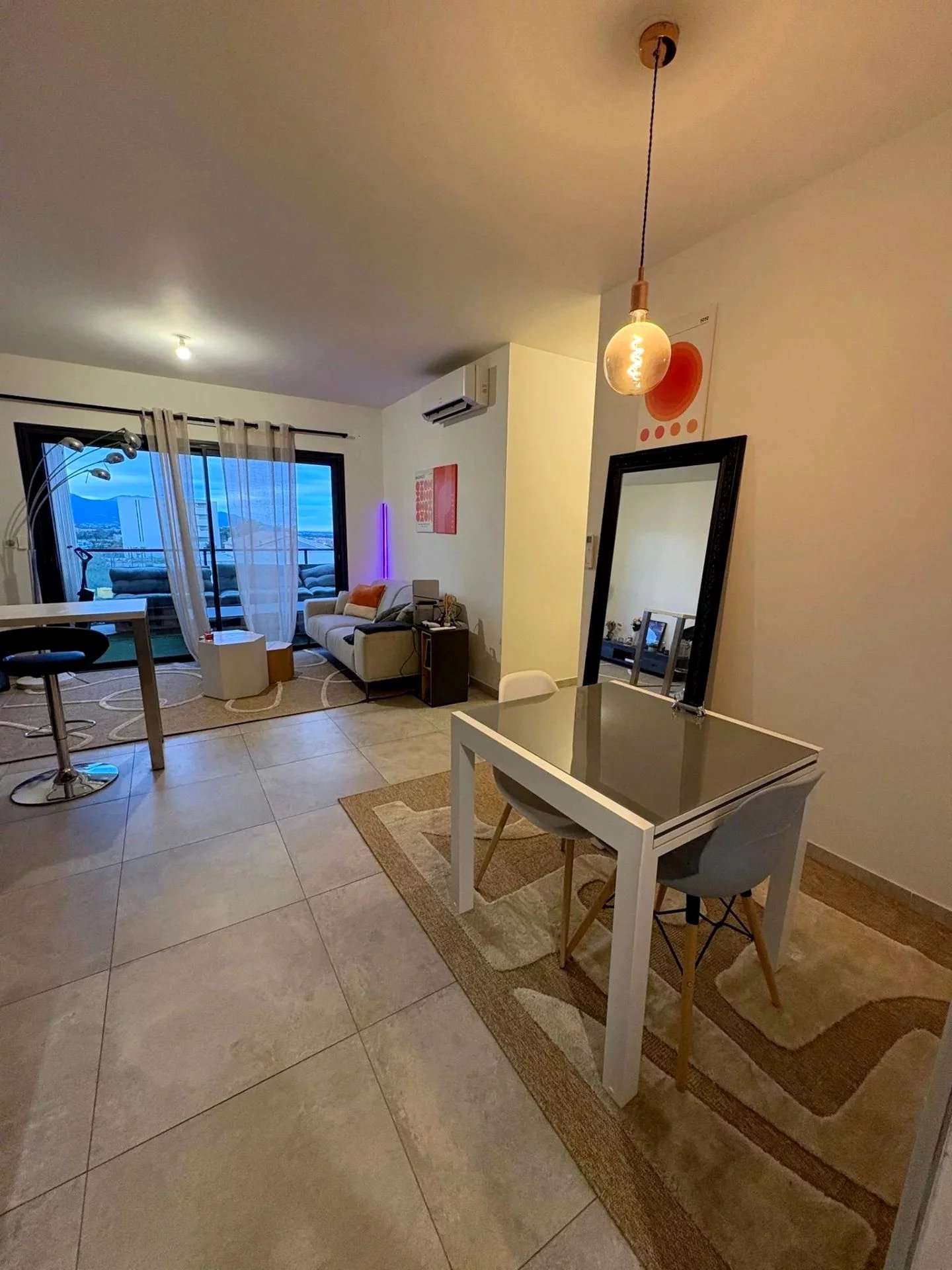 -d’un séjour lumineux avec cuisine équipée,